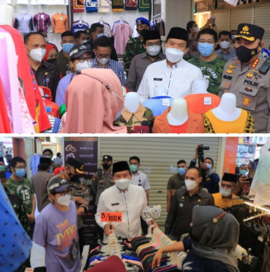 RIAUMADANI. COM - Walikota Pekanbaru Dr. H. Firdaus, S.T., M.T bersama jajaran unsur Forkopimda meninjau aktivitas di sejumlah pusat perbelanjaan, Jumat (27/8). Rombongan mendatangi Sukaramai Trade Centre (STC) dan Mal Pekanbaru (MP).