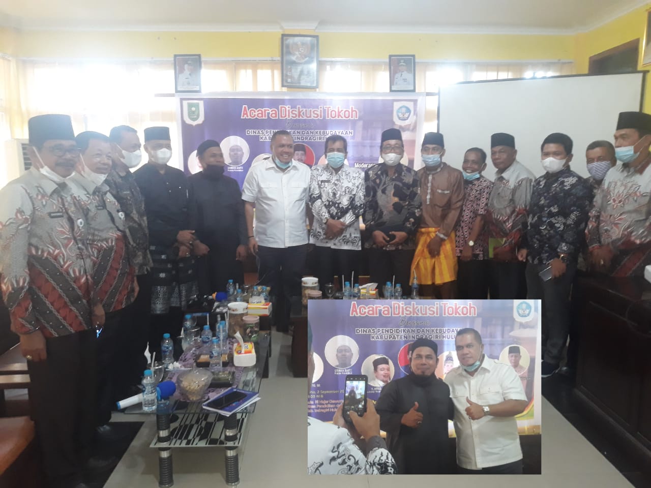 Hadir dalam kesempatan tersebut sebagai moderator, Kamaruzaman, S.sos, M.Si, Plt. Dinas Pendidikan dan Kebudayaan Kab. Inhu, Eka Satria, SS Ketua PGRI Kab. Inhu, H. Apris, SS Ketua Dewan Pendidikan Kab. Inhu, Datuk Sri Marwan MR Ketua Lembaga Adat Melayu Riau (LAMR) Kab. Inhu, H. Yopi Arianto,SE Mantan Bupati Inhu, dan Usman Syafii Praktisi Pendidikan Kab. Inhu.