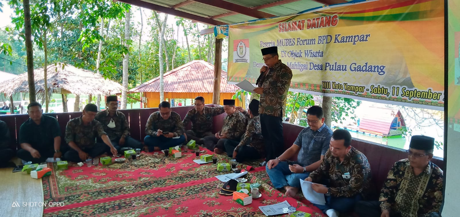 RIAUMADANI. COM - Forum Badan Permusyawaratan Desa (BPD) Kampar menggelar acara Musyarawah Besar (Mubes) dalam pemilihan Ketua Umum dan beberapa pengurus yang saat ini sudah tidak Menjabat di BPD lagi, Sabtu (11/9/2021) di objek wisata Tepian Mahligai Desa Pulau Gadang.