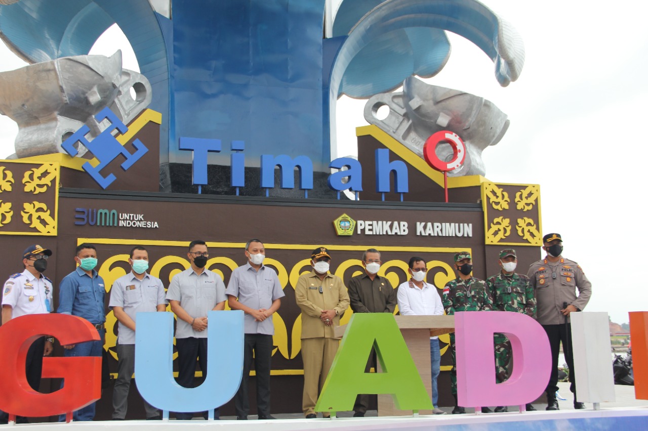 Tugu ini secara resmi telah diserahkan PT Timah Tbk kepada Pemerintah Kabupaten Karimun, Senin (13/9/2021). Penyerahan ini dilakukan Direktur Keuangan dan Manajemen Risiko PT Timah Tbk Wibisono kepada Bupati Karimun Aunur Rafiq yang turut dihadiri forkompinda.
