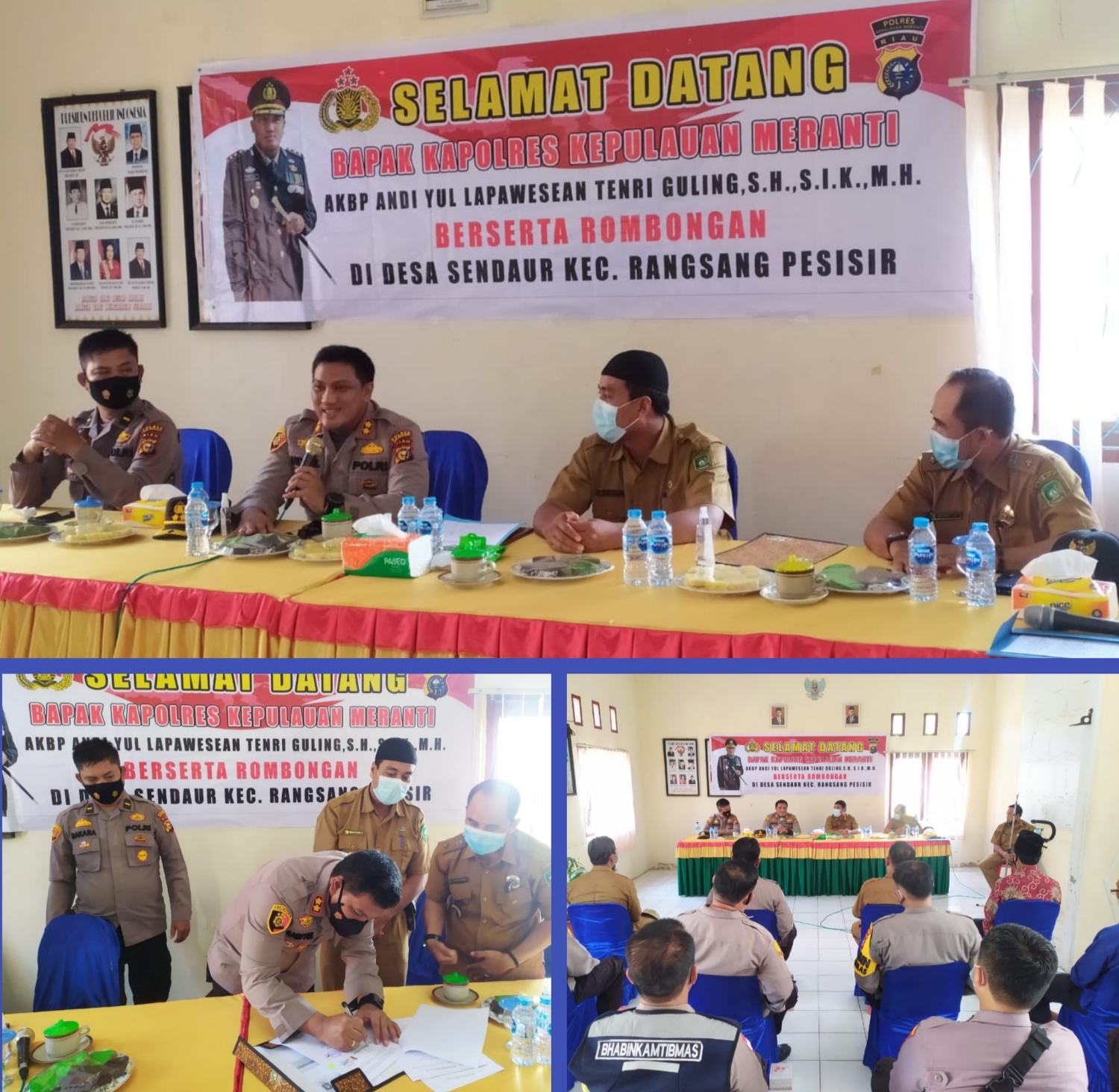 Adapun Kunjungan Kapolres bersama rombongan ini juga bertujuan untuk meningkatkan hubungan silaturahmi antara Polres Meranti bersama  Pemerintah kecamatan Rangsang Pesisir serta Desa Sendaur dan masyarakat, sekaligus memberikan motivasi kepada seluruh anggota Bhabinkamtibmas agar dapat melaksanakan tugas dengan baik dan profesional.