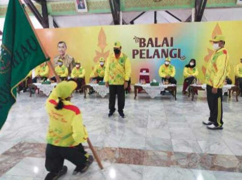 RIAUMADANI. COM -  Gubernur Riau Syamsuar, Senin (1/11/2021) sore melepas langsung keberangkatan kontingen Riau yang akan tanding pada Pekan Paralimpik Nasional (Peparnas) XVI Papua.