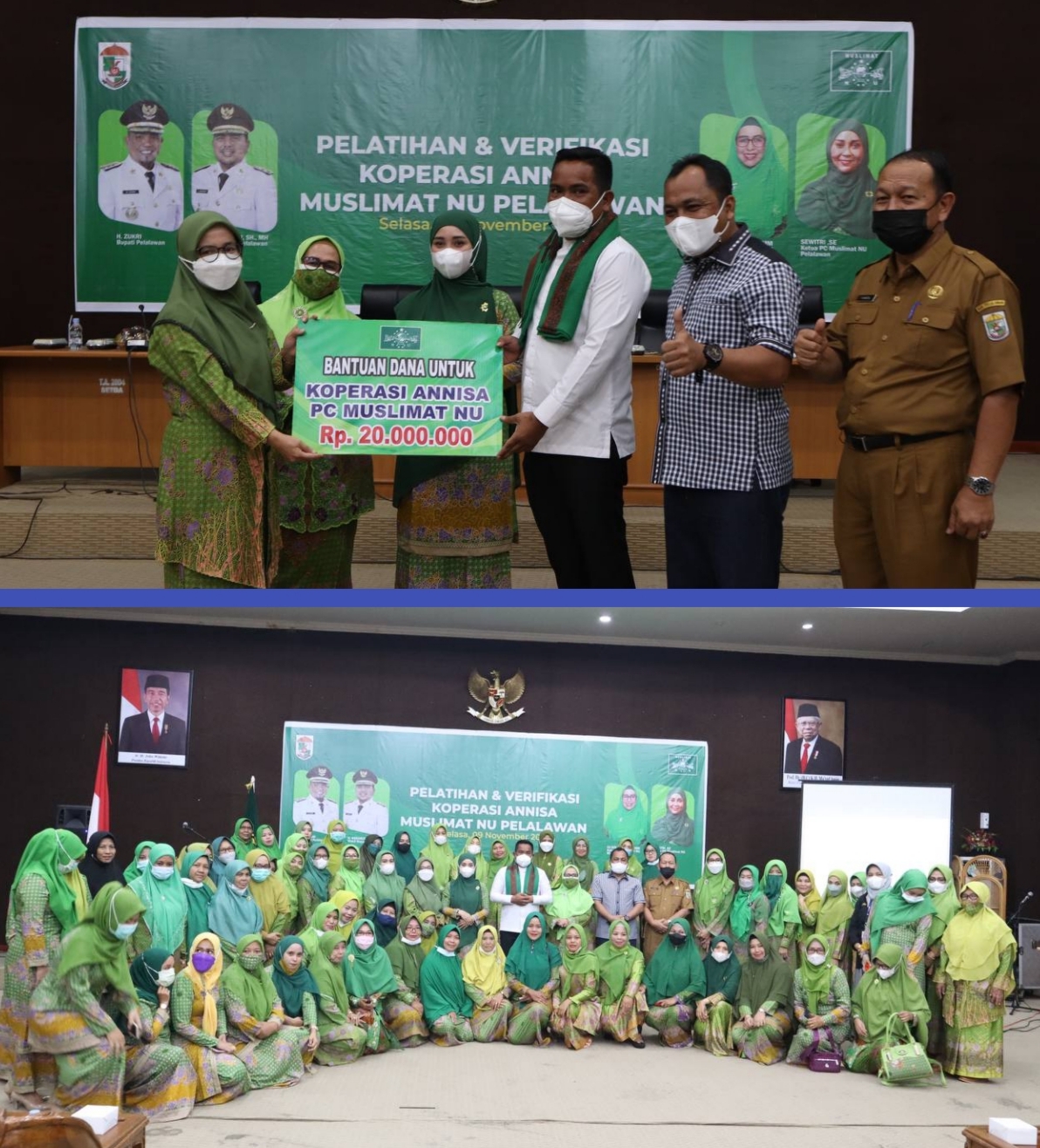 Ketua PC Muslimat NU Pelalawan, Sewitri, SE dalam sambutannya menyampaikan bahwa "Acara pelatihan ini sudah lama tertunda dikarenakan kondisi covid-19 di Kabupaten Pelalawan yang membuat PC Muslimat NU tidak bisa membuat acara yang merangkul hingga 12 kecamatan, dimana sebelumnya Ketua PC Muslimat NU Pelalawan telah mengucurkan dana untuk membentuk koperasi Annisa Muslimat NU Pimpinan Anak Cabang Pangkalan kerinci, Pangkalan Lesung serta Pangkalan Kerinci.