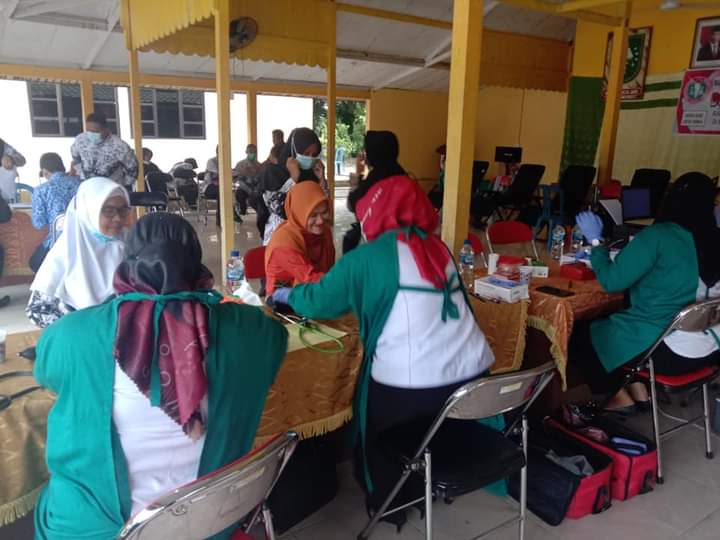 RIAUMADANI. COM - Dalam rangka menyambut dan menyemarakkan HUT PGRI ke-76, PGRI Kecamatan Ukui bekerjasama dengan PMI Kabupaten Pelalawan mengadakan bakti sosial berupa kegiatan donor darah bagi para guru. Kegiatan tersebut diadakan di Balai Desa Desa Trimulya Jaya, Kecamatan Ukui pada Rabu, 10 November 2021.