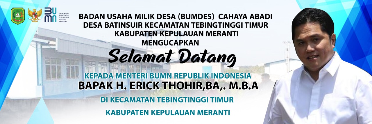 RIAUMADANI. COM - Pemerintahan Desa Batinsuir, Kecamatan Tebingtinggi Timur Kabupaten Kepulauan Meranti, Provinsi Riau, memberikan apresiasi yang setinggi-tingginya atas kedatangan Menteri BUMN. H. Erick Thohir. BA. MBA di Kecamatan Tebingtinggi Timur dalam program kunjungan kerja, Jumat (26/11/2021) esok