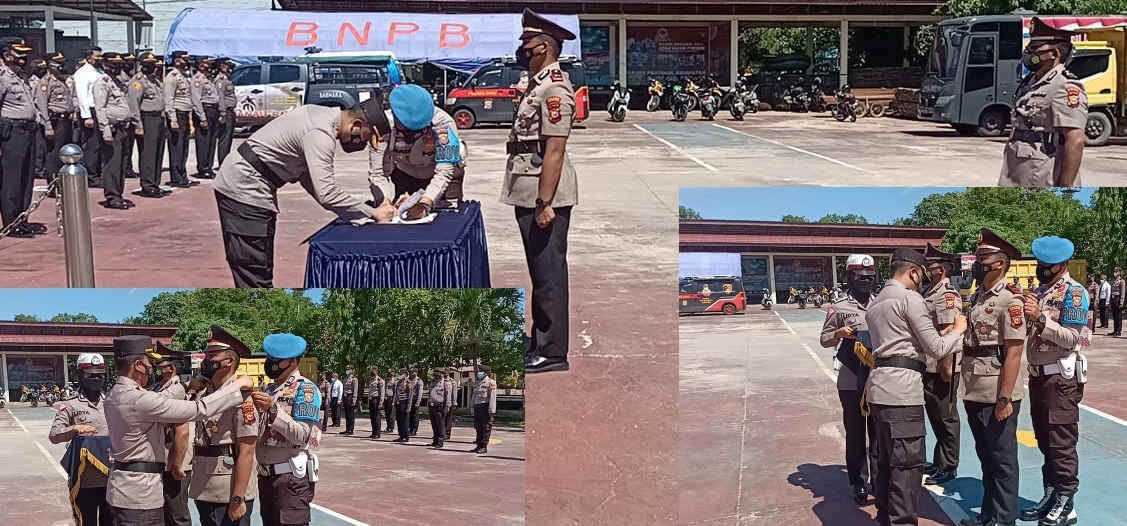 Adapun susunan acara, sbb : 1. Komandan apel memasuki lapangan Upacara, langsung mengambil alih pimpinan pasukan. 2. Kapolres Inhu selaku pimpinan Upacara memasuki lapangan Upacara, pasukan disiapkan. 3. Penghormatan pasukan. 4. Laporan Komandan Upacara. 5. Pejabat yang akan serah terima mengambil tempat dan laporan. 6. Pembacaan Keputusan Kapolda Riau. 7. Penanggalan dan Penyematan Tanda Jabatan. 8. Pengambilan Sumpah Jabatan, Rohaniawan mengambil tempat. 9. Rohaniawan kembali ke tempat. 10. Penandatanganan berita acara sertijab, Berita Acara Pengambilan Sumpah Jabatan dan Pakta Integritas. 11. Pejabat yang telah serah terima kembali ke tempat. 12. Amanat Inspektur Upacara. 13. Pembacaan Doa. 14. Laporan Komandan Upacara. 15. Penghormatan Kepada Inspektur Upacara. 16. Upacara Selesai, Inspektur Upacara berkenan meninggalkan mimbar Upacara. 17. Pemberian Ucapan Selamat Kepada Pejabat Lama dan Pejabat Baru.
