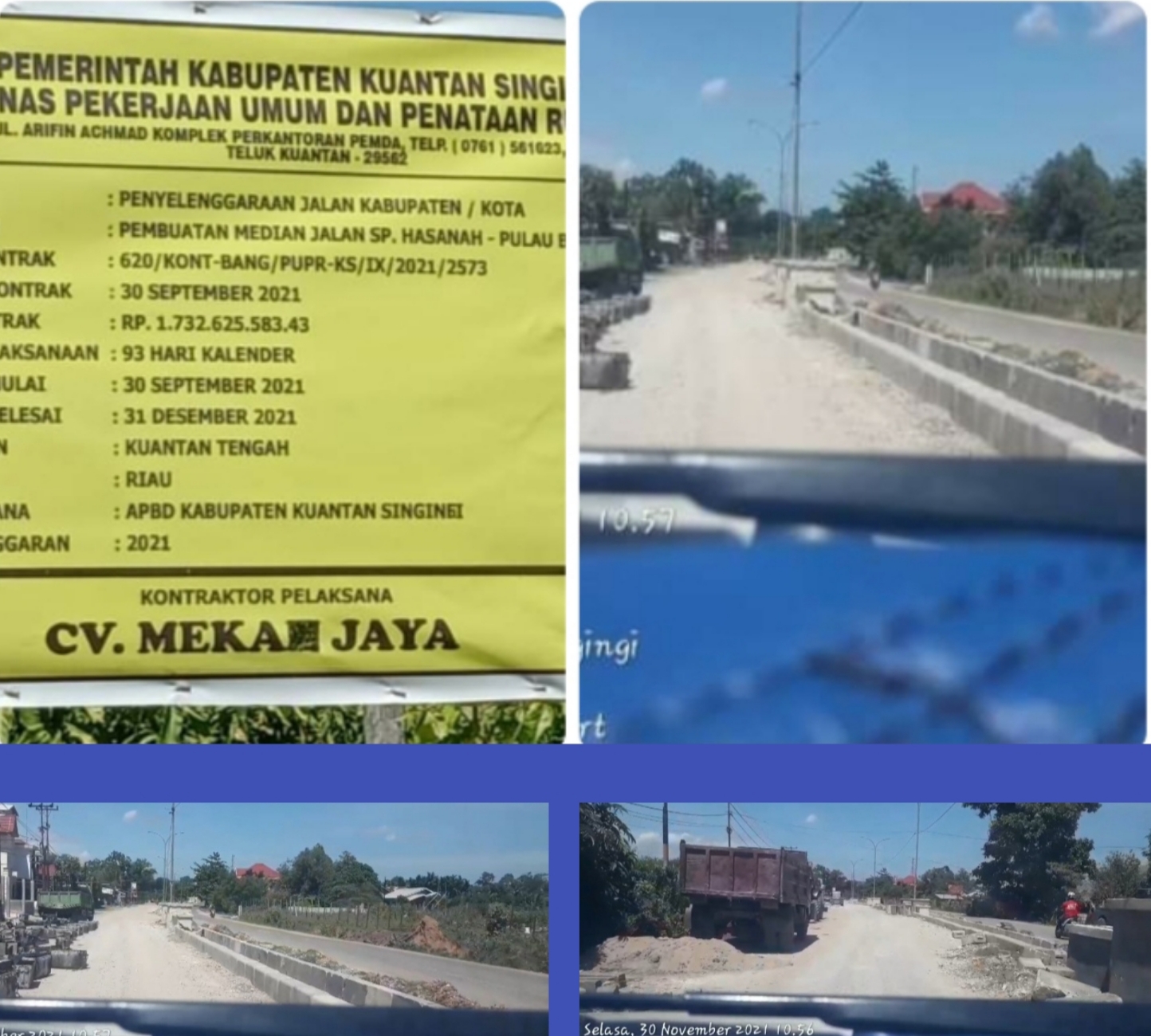 Pembangunan median jalan tersebut sangat menggembirakan bagi masyarakat Kabupaten Kuantan Singingi, tetapi dengan adanya proyek pembangunan pembuatan pembatas jalan yang sedang dikerjakan oleh pihak ketiga sebagai pelaksana yaitu, CV. Meka Jaya tersebut menimbulkan keresahan bagi pengguna jalan.