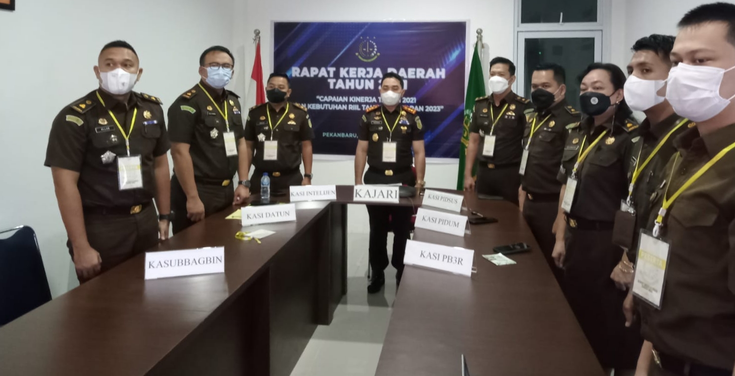 Rapat Kerja Daerah (Rakerda) 2021 selain diikuti oleh Kajari Kuansing Hadiman SH., MH juga di Ikuti oleh Kasi Intelijen, Kasi Pidsus, Kasi Datun, Kasi Pidum, Kasi PB3R, dan Kasubbagbin.