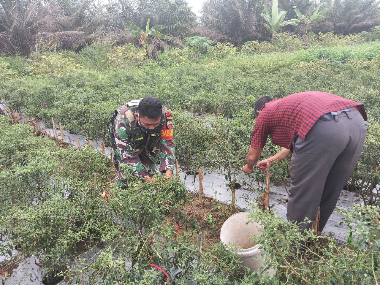 Jalin Kebersamaan, Babinsa Koramil 16/Tapung Kodim 0313/KPR Bantu Petani Panen Cabe