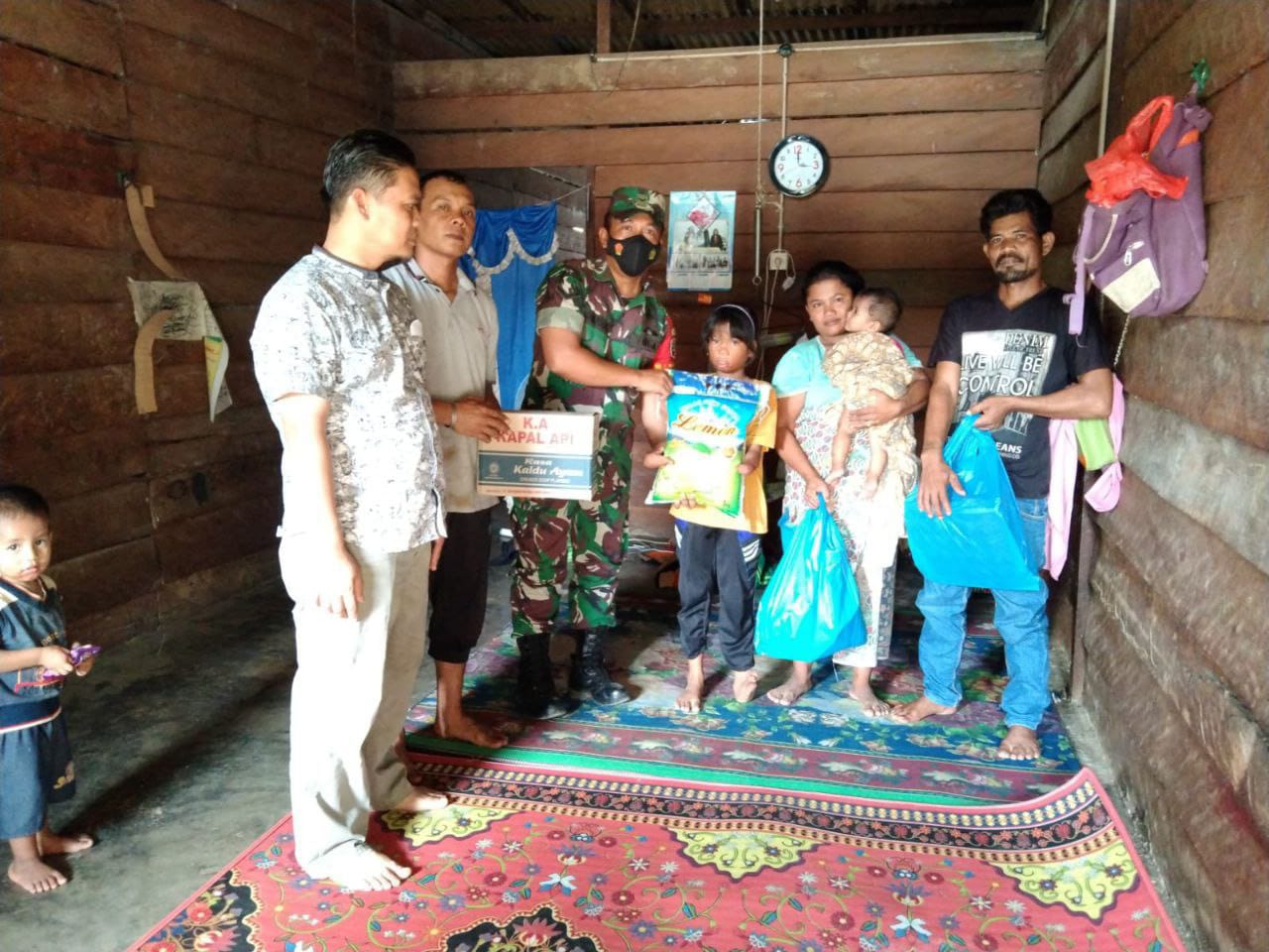 Peduli Sesama, Babinsa Koramil 16/Tapung Bagi Sembako Kepada Warga Kurang Mampu