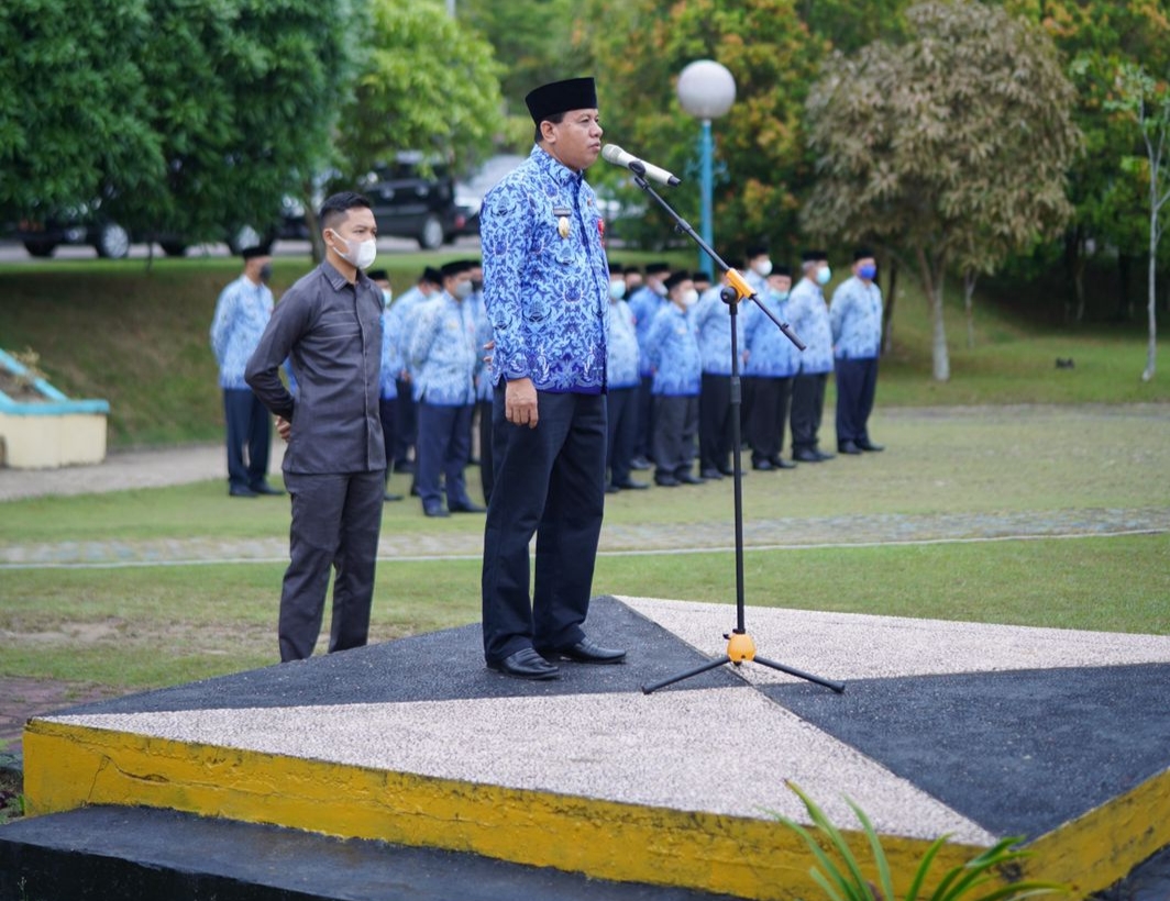 Penegesan tersebut disampaikan Plt Bupati Kuantan Singingi H Suhardiman Amby, Senin (17/01/2022) saat melaksanakan Apel Bersama Senin Pagi di lingkup Pemerintah Daerah (Pemda) Kabupaten Kuantan Singingi (Kuansing), Riau.