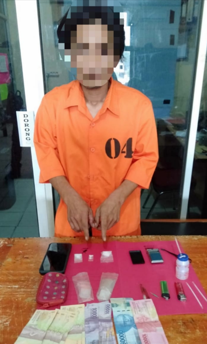Barsama pelaku turut diamankan barang bukit 2 (Dua) paket sedang di duga Narkotika jenis sabu, 1 paket kecil di duga Narkotika jenis sabu, 1 buah timbangan digital warna hitam, Uang Tunai sebanyak Rp.215.000, 1 Unit Hp merk Vivo warna hitam yang di gunakan pelaku dan barang bukti lainnya.