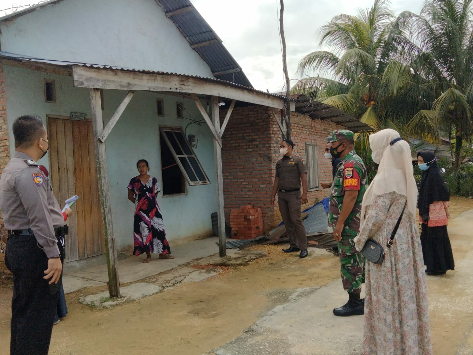 KAMPAR - Babinsa Koramil 05/KK Kodim 0313/KPR Serma Zulkarnain bersama Bhabinkamtibmas Polsek setempat, melaksanakan kegiatan PPKM Skala Mikro serta pendampingan dari Puskesmas Kampar Kiri Tengah melaksanakan Tracker dan edukasi kepada warga yg terpapar Covid-19 di Desa Simalinyang, Kec. Kampar Kiri Tengah, Kab. Kampar. Jum'at (18/02/2022).
