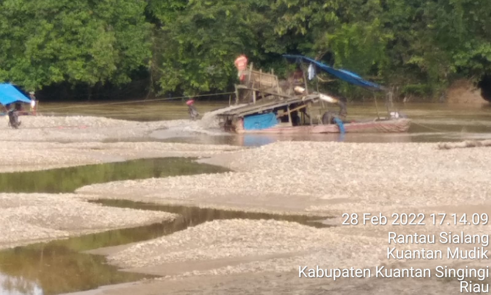 "Dari pantauan awak media beberapa pekan lalu 28 February 2022, sejumlah akvitas PETI melakukan aksinya. Sehingga timbunan pasir dan batu merusak kawasan tersebut. Ditambah lagi, ancaman abrasi juga mengancam tebing sungai Kuantan di Desa Rantau Sialang.