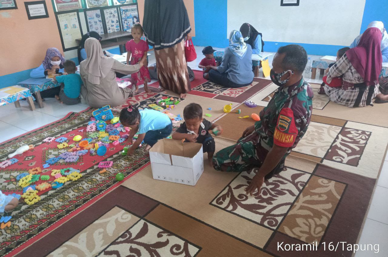 TAPUNG HILIR - Sertu Harjono Babinsa Koramil 16/Tapung Kodim 0313/Kampar sambangi sekolah PAUD Mawar, Desa Tapung Makmur, Kecamatan Tapung Hilir, Kabupaten Kampar. Kamis (10/03/2022).