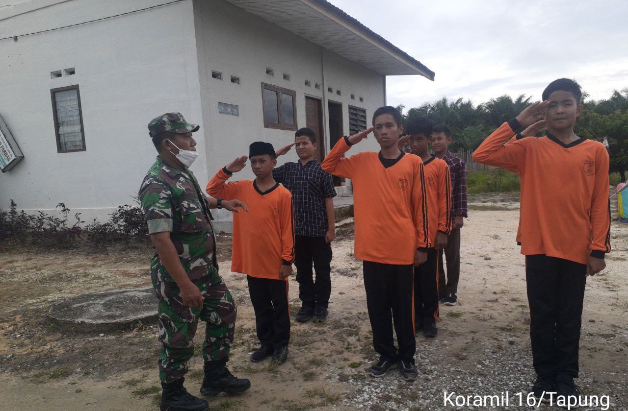 TAPUNG – Dalam rangka melatih kedisiplinan generasi muda sejak dini, Pelda I Ketut Suka Babinsa Koramil 16/Tapung Kodim 0313/Kampar melaksanakan kegiatan pelatihan PBB (Peraturan Baris Berbaris) kepada siswa-siswi di MTS Al Imtiyaz Desa Karya Indah Kecamatan Tapung Kabupaten Kampar. Selasa (15/03/2022).
