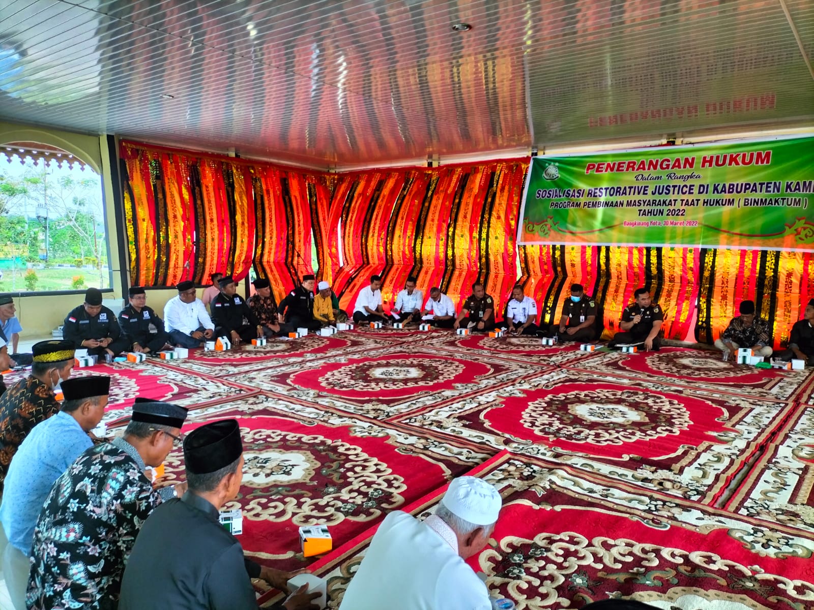Pada hari Kejaksaan Negeri (Kejari) Kampar menggelar sosialisasi Kampung Restorative Justice (RJ) di Balai Adat Lembaga Adat Kampar (LAK) Jalan Lingkar, Bangkinang Kota, Rabu (30/3/2022).