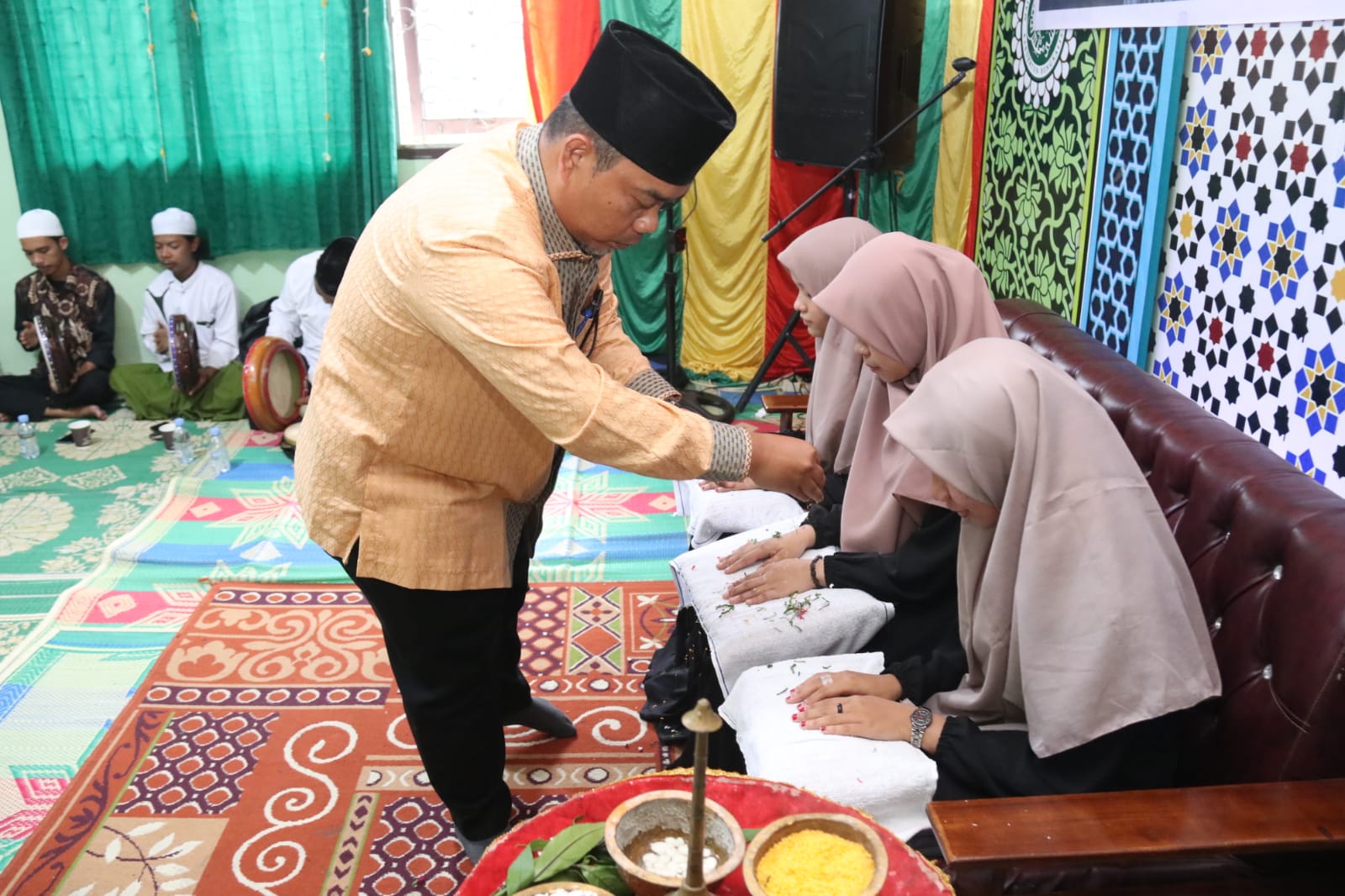 BENGKALIS - Bupati Bengkalis Kasmarni menghadiri acara penyambutan dan tepuk tawar 2 hafizah Alquran 30 juz sekaligus silaturahmi dengan pengurus Majelis Ulama Indonesia (MUI) setempat di Sekretariat MUI, Kamis (31/03/2022).