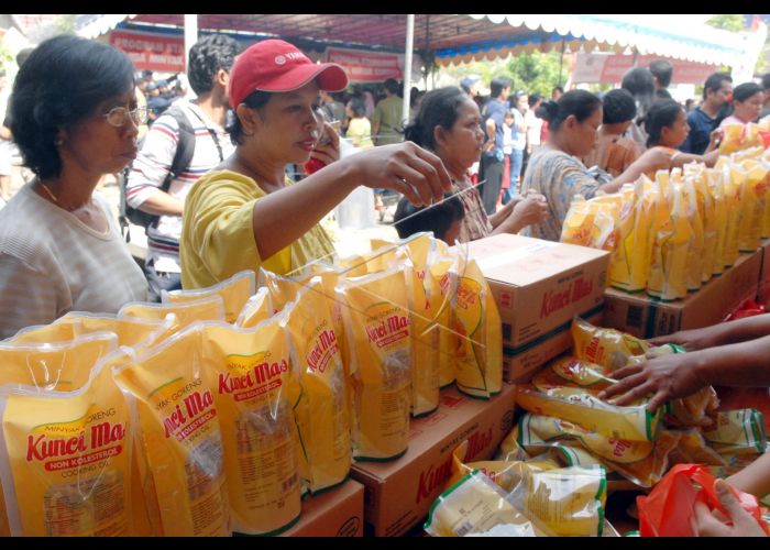 “Minyak goreng harga di pasar Rp 23.000 kita jual Rp 19.500 per liter maksimal dibeli 2 liter per orang, ini sudah ready,” katanya.