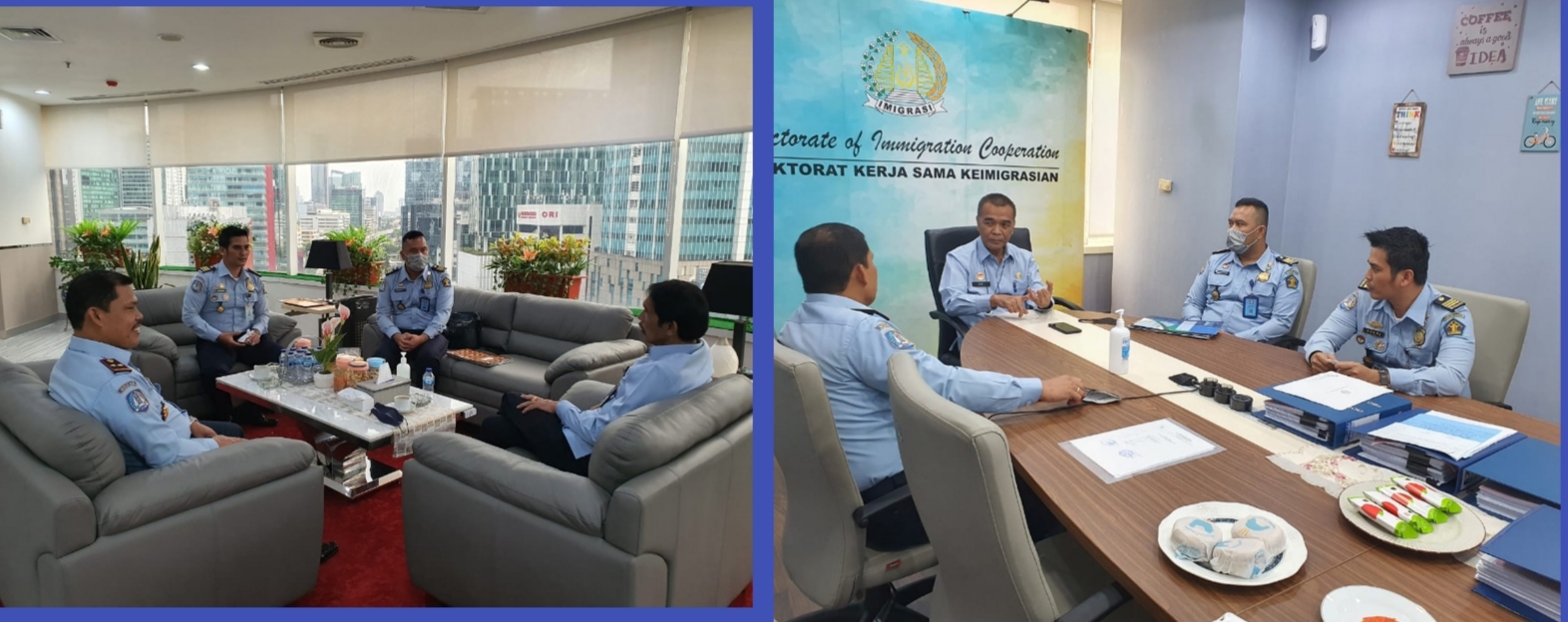 Pertemuan dilanjutkan ke Direktur Pengawasan dan Penindakan Keimigrasian Pria Wibawa di ruang kerjanya. Pada kesempatan tersebut Saroha melaporkan terkait pengawasan keimigrasian dan situasi terkini di wilayah kerja Kantor Imigrasi Sibolga yang secara umum dalam keadaan baik, serta pelaksanaan Rapat Tim Pora dan kolaborasi dengan instansi lain maupun Aparat Penegak Hukum.