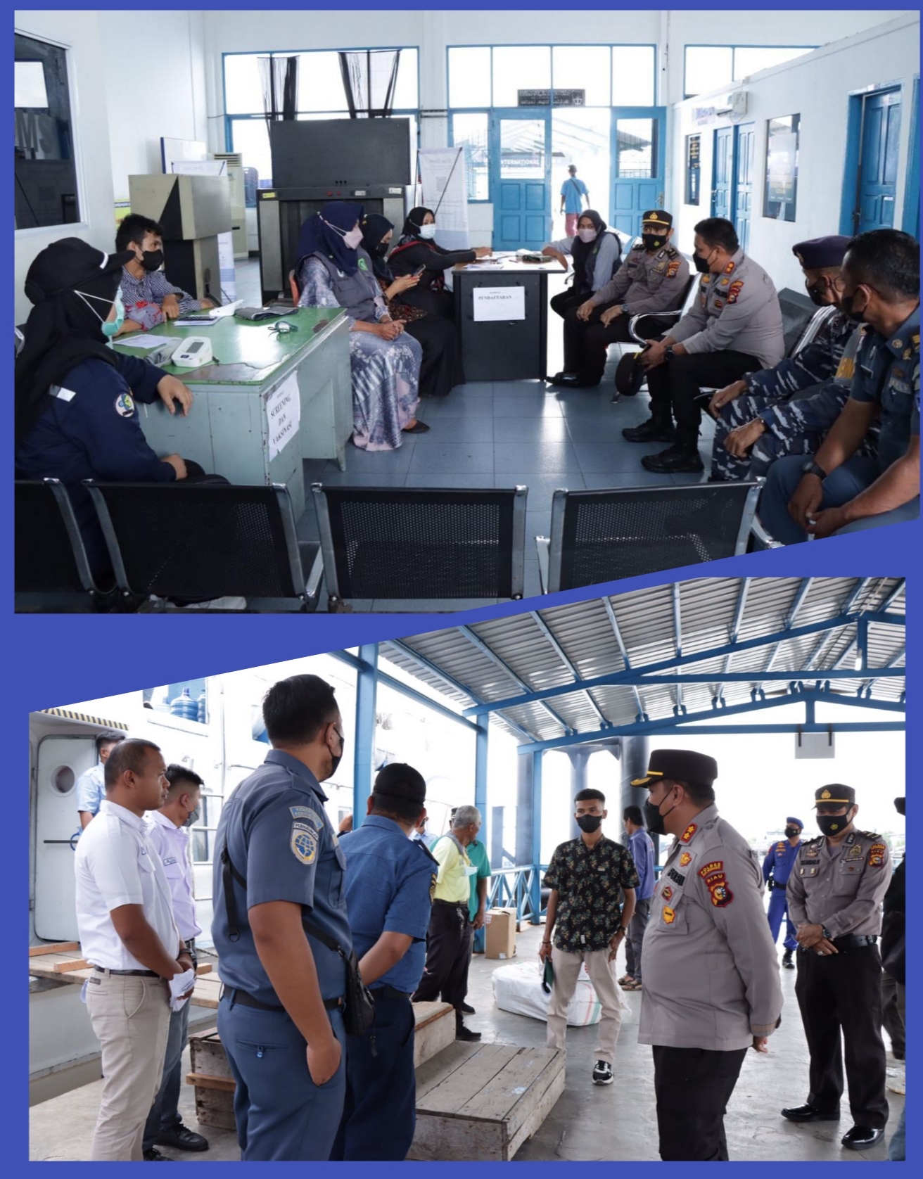 SELATPANJANG - Kapolres Kepulauan Meranti AKBP Andi Yul LTG SH SIK MH, Selasa (19/4/2022) siang, meninjau arus penumpang sebelum hari raya Idul Fitri 1443 H, serta tempat vaksinasi di terminal atau pelabuhan Tanjungharapan, Selatpanjang, Kecamatan Tebingtinggi.