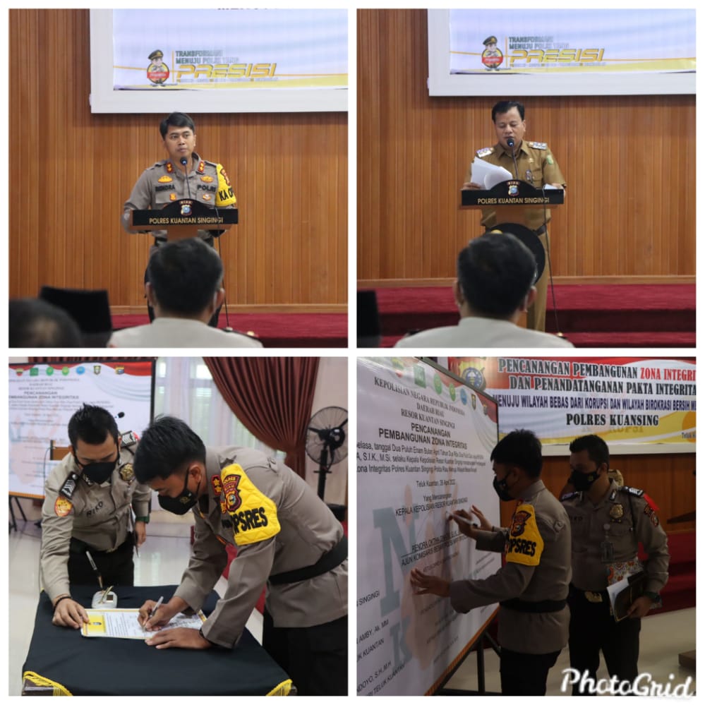 Kapolres Deklarasi Pencanangan Zona Integritas Polres Kuansing menuju WBK/WBBM Th 2022.