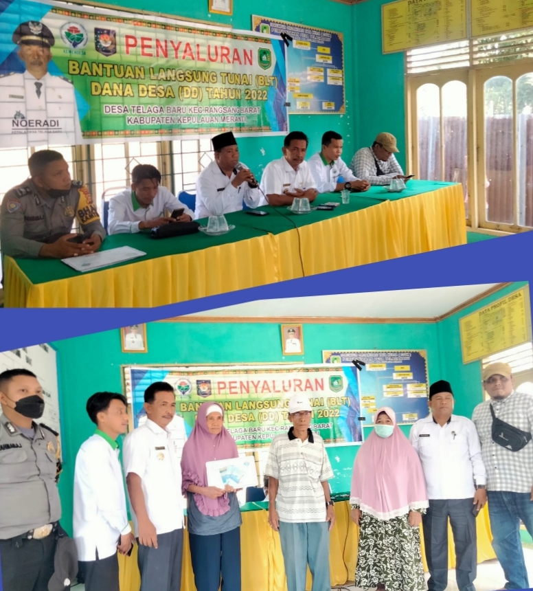 SELATPANJANG- Pemerintahan Desa Telaga Baru, Kecamatan Rangsang Barat, Kabupaten Kepulauan Meranti, kembali salurkan bantuan langsung tunai (BLT-DD) tahap ll tahun 2022, dikantor desa Telaga Baru, pada Rabu (08/06/2022).