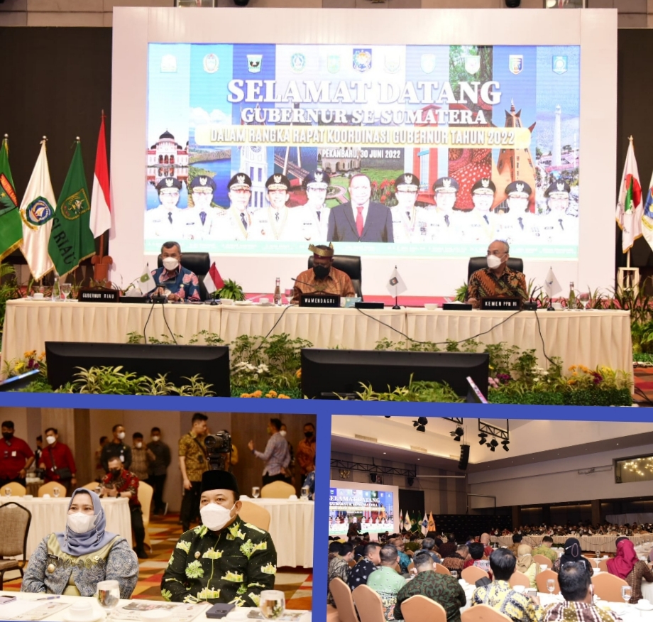 PEKANBARU - Pemerintah Kabupaten (Pemkab) Bengkalis mengikuti rapat koordinasi (Rakor) bersama Gubernur se-Sumatera di Ballroom Hotel Premiere Pekanbaru Kamis pagi, 30 Juni 2022.