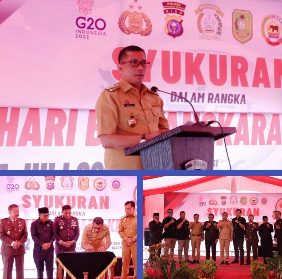 SELATPANJANG - Bupati dan wakil Bupati Kepulauan meranti mengikuti upacara dan syukuran yang di laksanakan di Mako Polres Kepulauan meranti, selasa (5/7) dalam rangka Hari Bhayangkara ke 76.