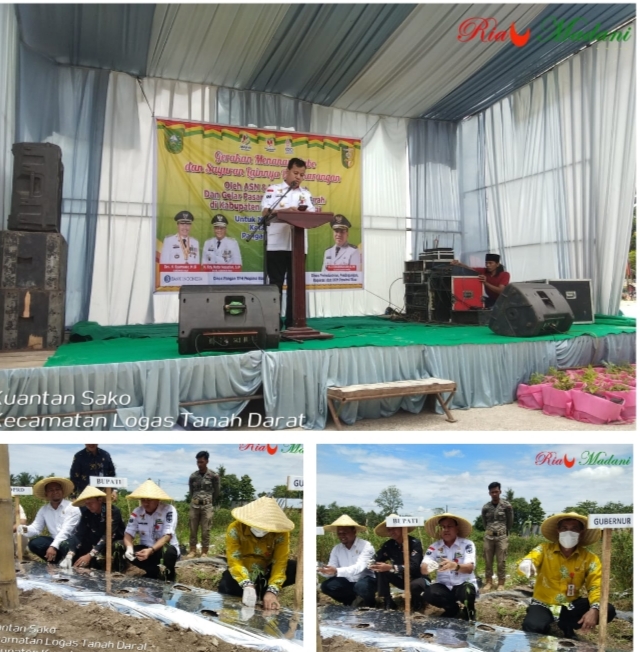 RIAU MADANI. COM. TELUK KUANTAN - Untuk menjaga stabilitas harga bahan kebutuhan pokok dan pangan serta pengendalian inflasi daerah, Bupati Kuantan Singingi melaksanakan pembukaan gerakan tanam cabe dan pasar murah di desa Kuantan Sako, kecamatan Logas Tanah Darat, kabupaten Kuantan Singingi (Kuansing), Riau. Kamis (27/10/2022).