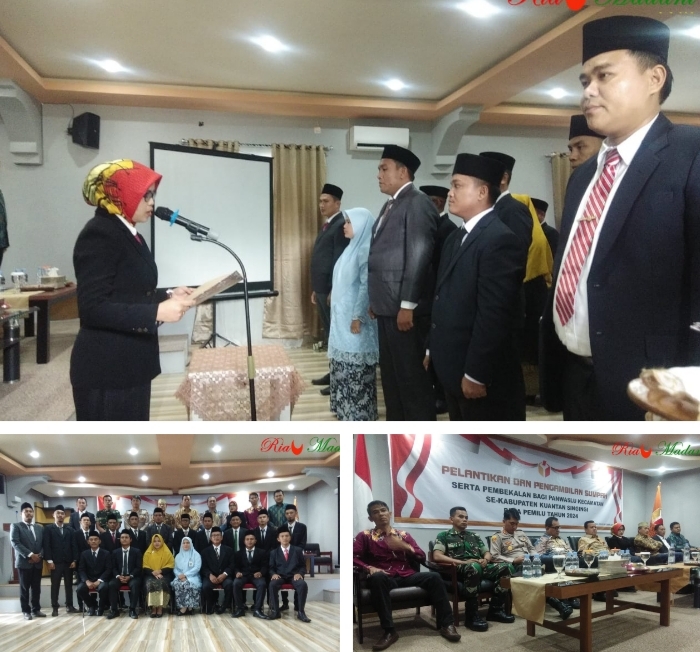 Tampak hadir dalam acara pelantikan dan pengambilan sumpah tersebut Plt. Bupati Kuansing Drs. H. Suhardiman Amby, Ak,. MM, Wakil Ketua II DPRD Kuansing Juprizal, SE,. M.Si, Kapolres Kuansing AKBP Rendra Oktha Dinata, SIK M.Si, Danramil 02 Lettu Arm Herdianto, Ketua KPU Kuansing Irwan Yuhendi, ST , Ketua Bawaslu Riau Amiruddin Sijaya, S.Pd,. MM Ketua Bawaslu Kuansing Nurafni, Kejari Kuansing atau yang mewakiki Danang Seprianto SH dan Serta Camat Sekabupaten Kuantan Singingi.