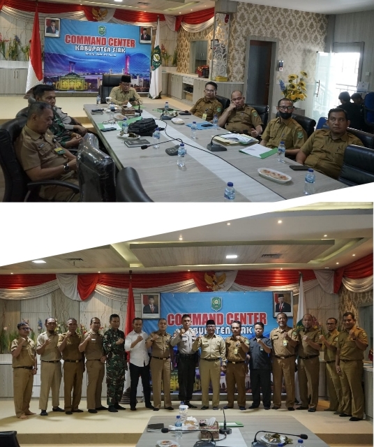 RIAU MADANI. COM. SIAK Sekretaris Daerah Kabupaten Siak Arfan Usman bersama BPS Siak dan OPD terkait, mengikuti Rapat Koordinasi dalam rangka Pengendalian Inflasi Daerah, secara virtual di Ruang Bandar Siak (Lt.II Kantor Bupati Siak), Senin (31/10/22).