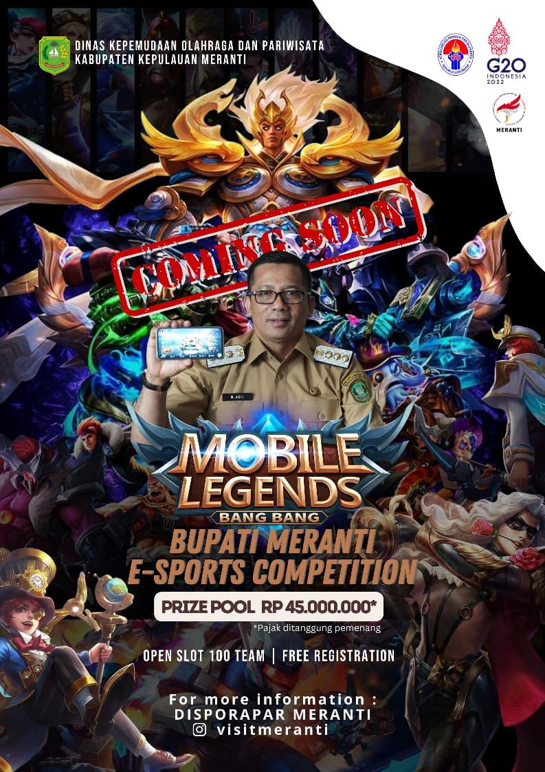 RIAU MADANI. COM . SELATPANJANG - Dalam rangka menyambut Hut Kabupaten Kepulauan Meranti ke-XIV , 19 Desember 2022 Pemerintah Daerah Kabupaten Kepulauan Meranti akan melaksanakan pertandingan permainan Game Mobile Legends yang akan diselenggarakan oleh Dinas Pariwisata Kabupaten Kepulauan Meranti.