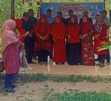 Pengukuhan Ikatan Keluarga Kengkawan Samieng Alumni SMP Negeri 1 Tanah Putih Sedinginan oleh Kepsek SMPNegeri 1 Tanah Putih ibuk Nini Trisnawati. S,Pd diwakili oleh ibuk Syafrida. R. S.Pd dan ibuk Elmawati, S.Pdi Sabtu 10 Desember 2022RIAUMADANI. COM, DURI - Alumni Angkatan Tahun 1987 SMPN 1 Tanah Putih Sedinginan menggelar acara Pengukuhan Pengurus Alumni periode 2023-2025 dan reuni yang di adakan di Taman Wisata Seroja km 11 Mandau Duri.
