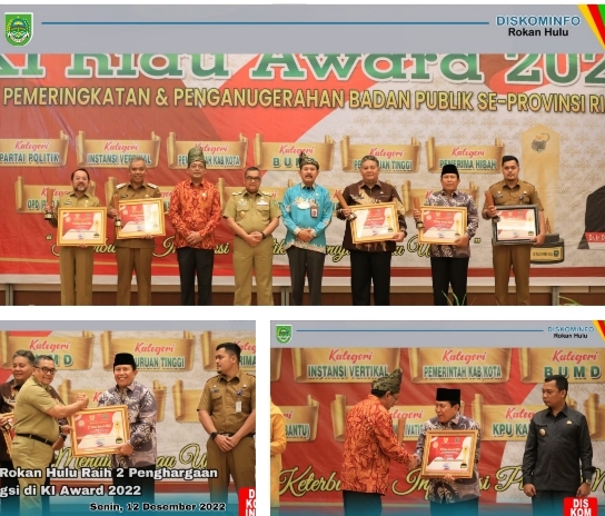 RIAUMADANI. COM. ROKANHULU - Ajang Pemeringkatan dan Penganugerahan Badan Publik se Provinsi Riau tahun 2022 dalam acara Komisi Informasi (KI) Riau Award tahun 2022 penghargaan yang diberikan dengan berbagai kategori yang lebih kurang dalam satu tahun menjadi penilaian oleh Komisi Informasi (KI) Riau. Dengan "Keterbukaan Informasi Publik Menuju Riau Unggul".