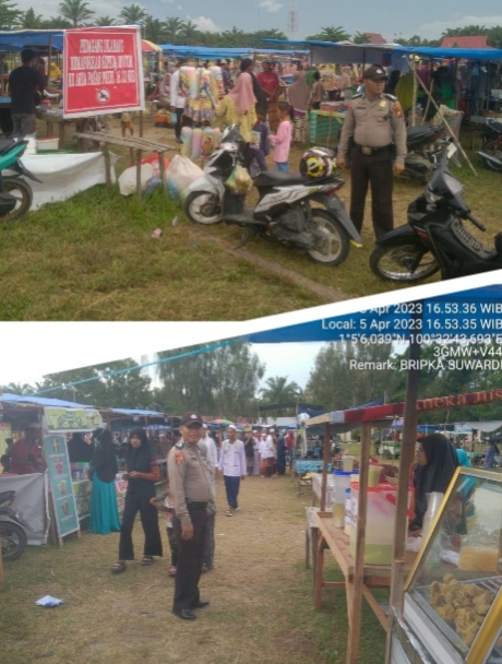 RIAUMADANI. COM, ROKAN HULU - Personil Polsek Kepenuhan Polres Rokan Hulu (Rohil) Bripka Suwardi, Bripka Syahril Muda SH dan Briptu Roy Hakim Lubis patroli Pasar Ramadhan di Kelurahan Kota Tengah, Rabu (5/4/2023) sekitar Pukul 17.00 Wib sampai selesai.