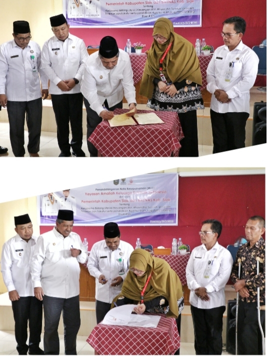Penandatanganan perjanjian kerjasama itu, dilakukan Bupati Siak Alfedri di saksikan Wakil Bupati Siak Husni Merza dan kepala Dinas Sosial Wan Idris. Bupati Siak Alfedri mengucapkan syukur atas penandatanganan MoU yang dilaksanakan antara Yayasan Amaliah Keluarga Sakinah Indonesia, dengan pemerintah kabupaten Siak dan Baznas kabupaten Siak untuk penderita disabilitas di kabupaten Siak.