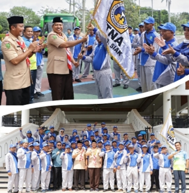 RIAU MADANI. COM. SIAK - Bupati Siak Alfedri melepas keberangkatan 58 Kontingan Pekan Nasional (PENAS) XVI Kontak Tani Nelayan Andalan (KTNA), menuju Kota Padang Sumatera Barat (Sumbar), Kamis (8/6/2023).