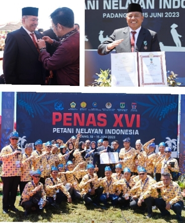 "Alhamdulillah, hari ini saya senang dan bangga bersama beberapa Gubernur dan Bupati yang ada di Indonesia, menerima penghargaan Satyalancana Wira Karya Pembangunan Bidang Pertanian dari Presiden Republik Indonesia, yang diserahkan oleh Menteri Pertanian Syahrul Yasin Limpo di Padang Sumatera Barat, dalam acara Pekan Nasional (Penas) Kontak Tani Nelayan Andalan (KTNA) ke XVI tahun 2023," ujarnya.