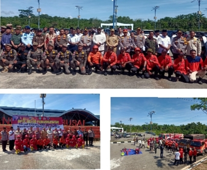 Tampak diikuti, Kasat Samapta Polres Rohil AKP Didi Antoni SH MH, Kasat Pol PP Rohul, Camat Rambah Samo H Herokertus Sembiring, Kepala Perencanaan Pertama Bandara Tuanku Tambusai Suwito ST M Si, Kapolsek Rambah Safaruddin SH, Kapolsek Rambah Samo Ipda Totok Nurdianto SH MH, para Kades, Ketua BPD, Mahasiswa Peduli Api (MPA) Rokania MPA Rohul dan Staf Bandara Tuanku Tambusai