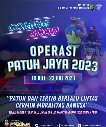 Polda Metro Jaya akan mengelar Operasi Patuh Jaya 2023 mulai 10-23 Juli 2023.