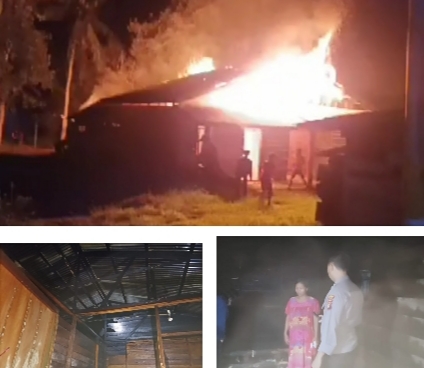 " Lebih lanjut Subadri menceritakan, api begitu cepat berkobar di atas rumah sekitar pukul 22.30 Wib, beruntung waktu kejadian banyak warga yang lewat di TKP karena habis menontong pertandingan Turnamen bola voli, kalau sempat tidak, dirinya memperkirakan rumah akan habis terbakar.