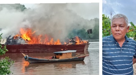 RIAU MADANI. COM,. SIAK - Diketahui satu buah kapal KM Jaya Mulia Sakti Terbakar di Perairan Sungai Siak Tepatnya di kampung Teluk Mesjid.di duga Kapal tersebut milik Akun. Yang mana kapal tersebut bermuatan barang sembangko berasal dari selatpanjang,, tujuan Pekanbaru Provinsi Riau, Sabtu (22/07/2023)