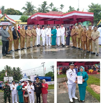 RIAUMADANI. COM. ROKANHULU - Dalam rangka memperingati Detik-detik HUT Kemerdekaan RI ke-78 Pemerintah Kecamatan Rambah Hilir Kabupaten Rokan Hulu mengadakan upacara Penaikan Bendera Merah Putih, sebagai Inspektur Upacara, Camat Rambah Hilir H. Agus Salim S. Sos, Kamis, 17 Agustus 2023