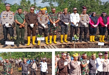 Kegiatan yang bertajuk “Polri Lestarikan Negeri, Penghijauan Sejak Dini” dilaksanakan oleh jajaran Polsek Sungai Apit dengan menanam 150 batang pohon berbagai jenis antena lain, pohon Jengkol, Matoa dan Nangka di Manggrove wisata Sungai Bersejarah Kampung Kayu Ara Permai Kabupaten Siak. Rabu (23/8/2023) pagi.