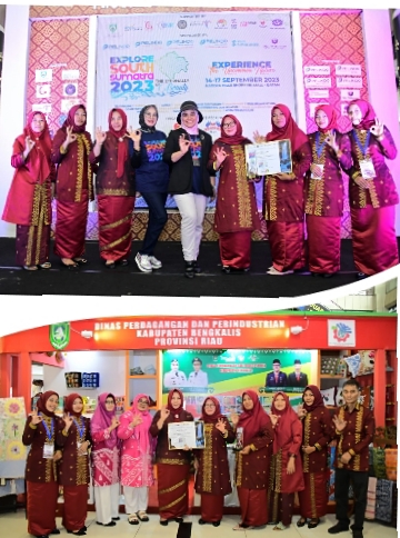 RIAUMADANI. COM, BATAM - Dinas Perdagangan dan Perindustrian (Disperindag) Kabupaten Bengkalis bekerja sama dengan Dewan Kerajinan Nasional Daerah (Dekranasda) Kabupaten Bengkalis mengikuti Pameran Explore South Sumatera 2023 di Atrium Nagoya Hills Shopping Mall Batam.