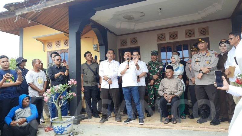 Bahlil menjumpai warga di halaman depan kediaman tokoh masyarakat Rempang, Gerisman Ahmad, di Pantai Melayu, Kelurahan Rempang Cate, Kecamatan Galang.
