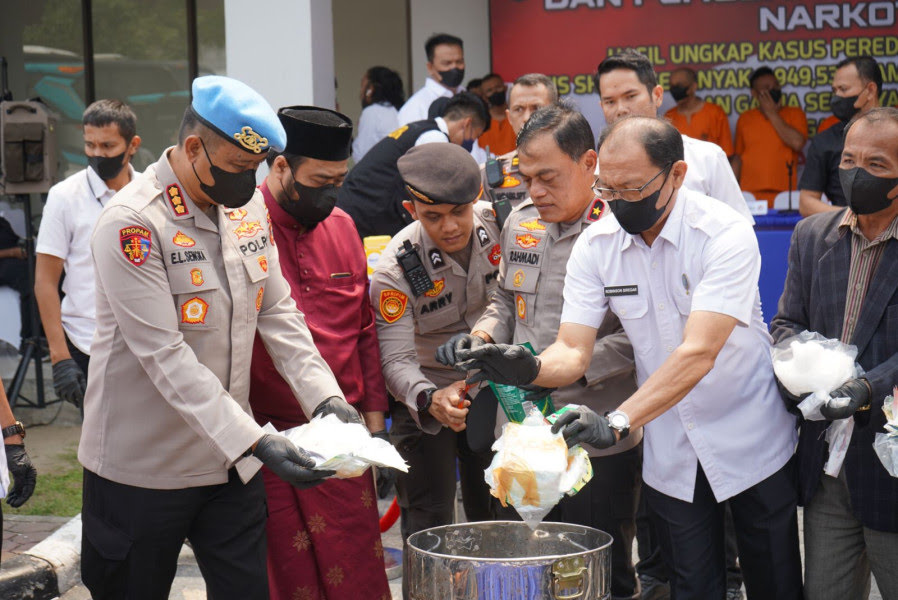 Pemusnahan barang bukti dilaksanakan dengan cara membakar Narkoba jenis ganja, meleburkan sabu-sabu dan ekstasi dengan campuran cairan lainnya.