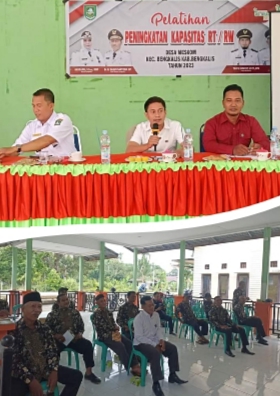 Pj. Kades Meskom Hendra dalam sambutannya menyampaikan bahwa kegiatan pelatihan peningkatan kapasitas RT dan RW ini sangat penting, karena untuk memperkuat tugas dan fungsi para ketua RT dan RW sebagai garda terdepan yang paling dekat serta bersentuhan langsung dengan masyarakat,"jelasnya