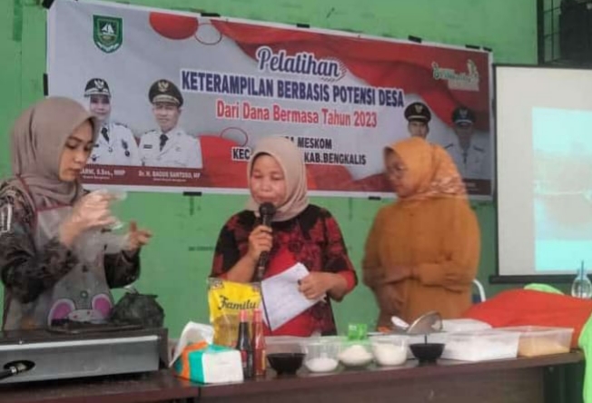 RIAUMADANI. COM, Bengkalis - Pemerintah Desa Meskom Kecamatan Bengkalis Kabupaten Bengkalis mengadakan Pelatihan Keterampilan memasak berbasiskan potensi Desa bagi ibuk-ibuk PKK dan masyarakat